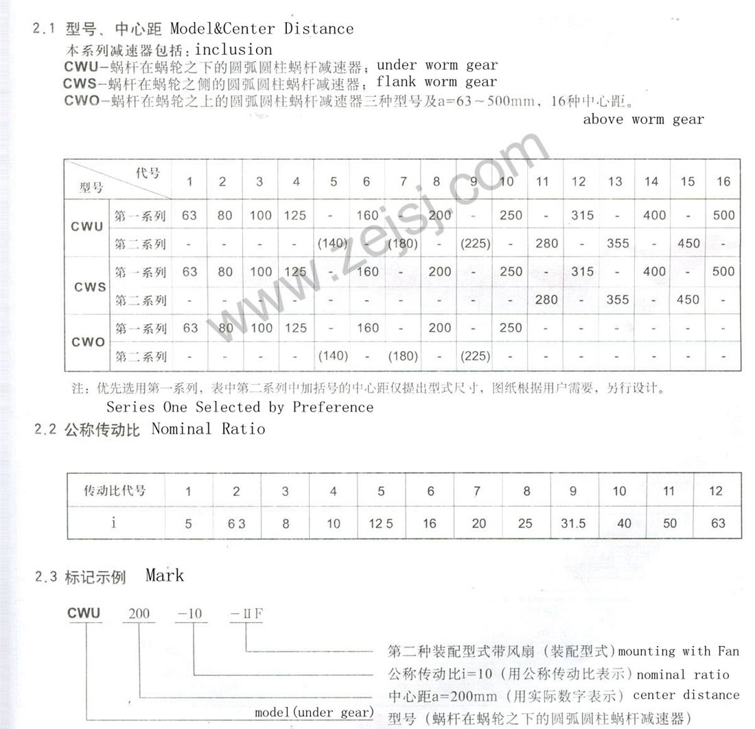 Arc cylindrical worm shaft can be positive, negative two directions transportation, input speed of not more than 1500r / min, the working environment temperature -40 ~ 40 ℃. When the working environment temperature below 0 ℃, before the start of oil must be heated to above 0 ℃: When the working temperature is higher than a bad environment 40 ℃, cooling measures must be taken.